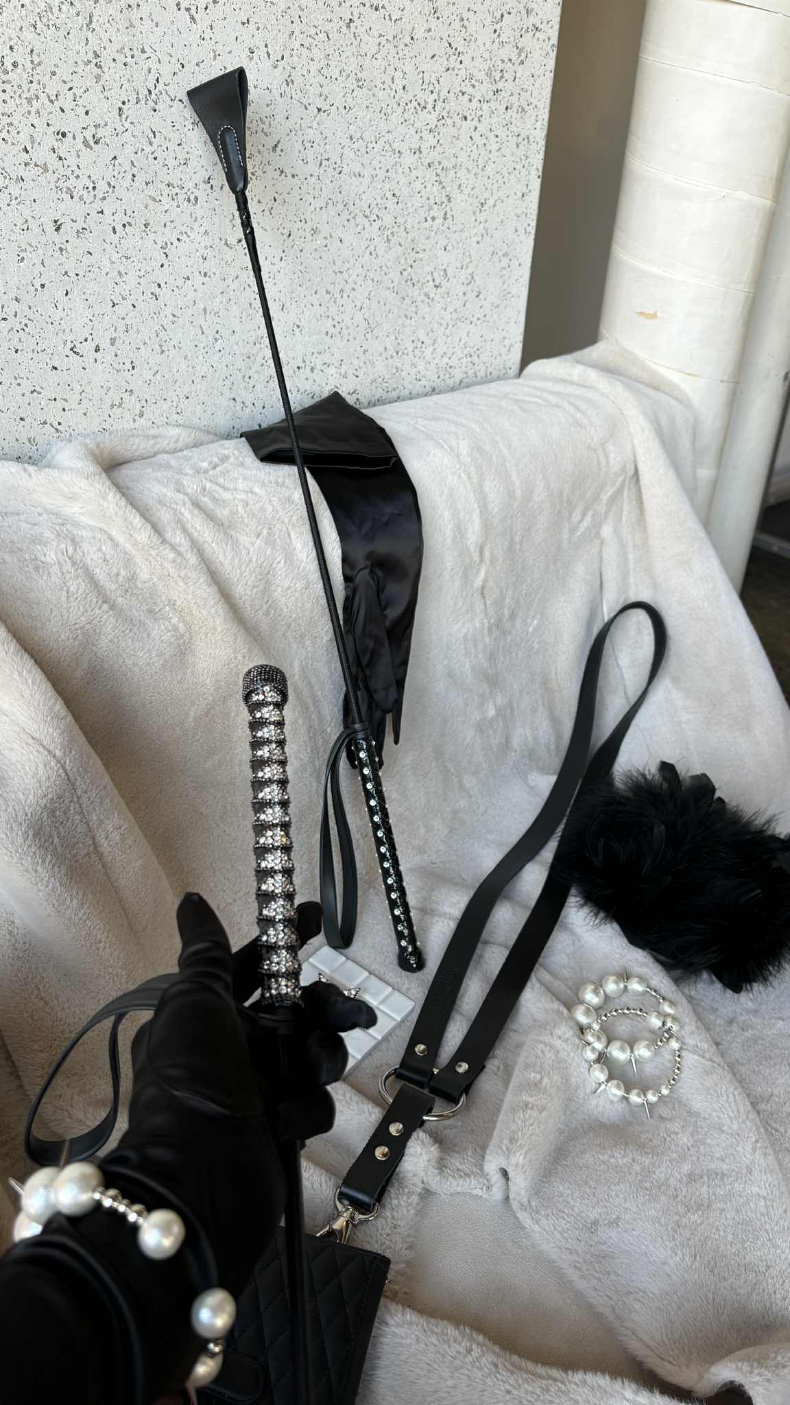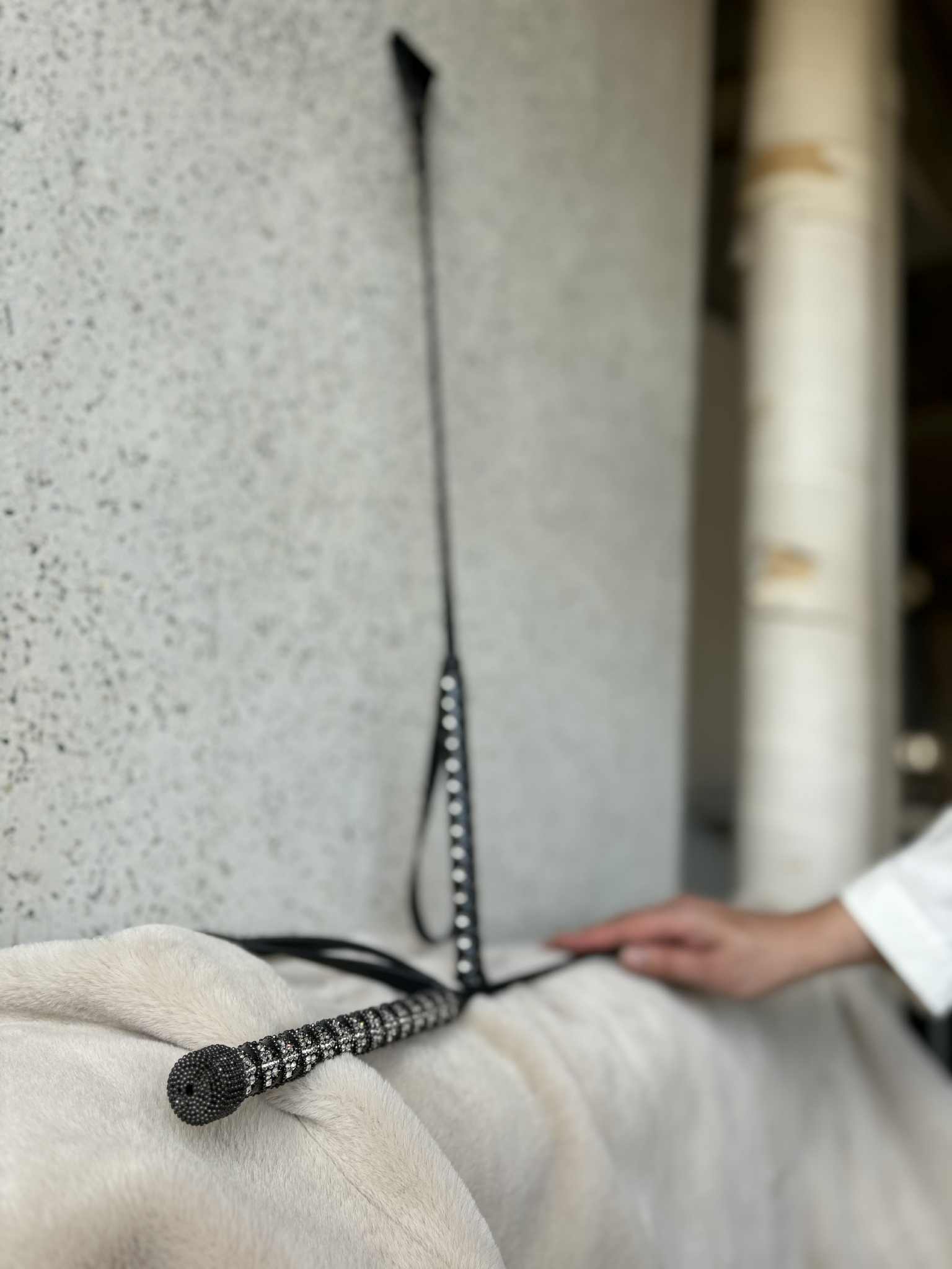 キラキラと輝く宝石のような美しさを持つ乗馬鞭です。プレシオサのクリスタルが贅沢にあしらわれ、FETISH で魅力的なアイテムに