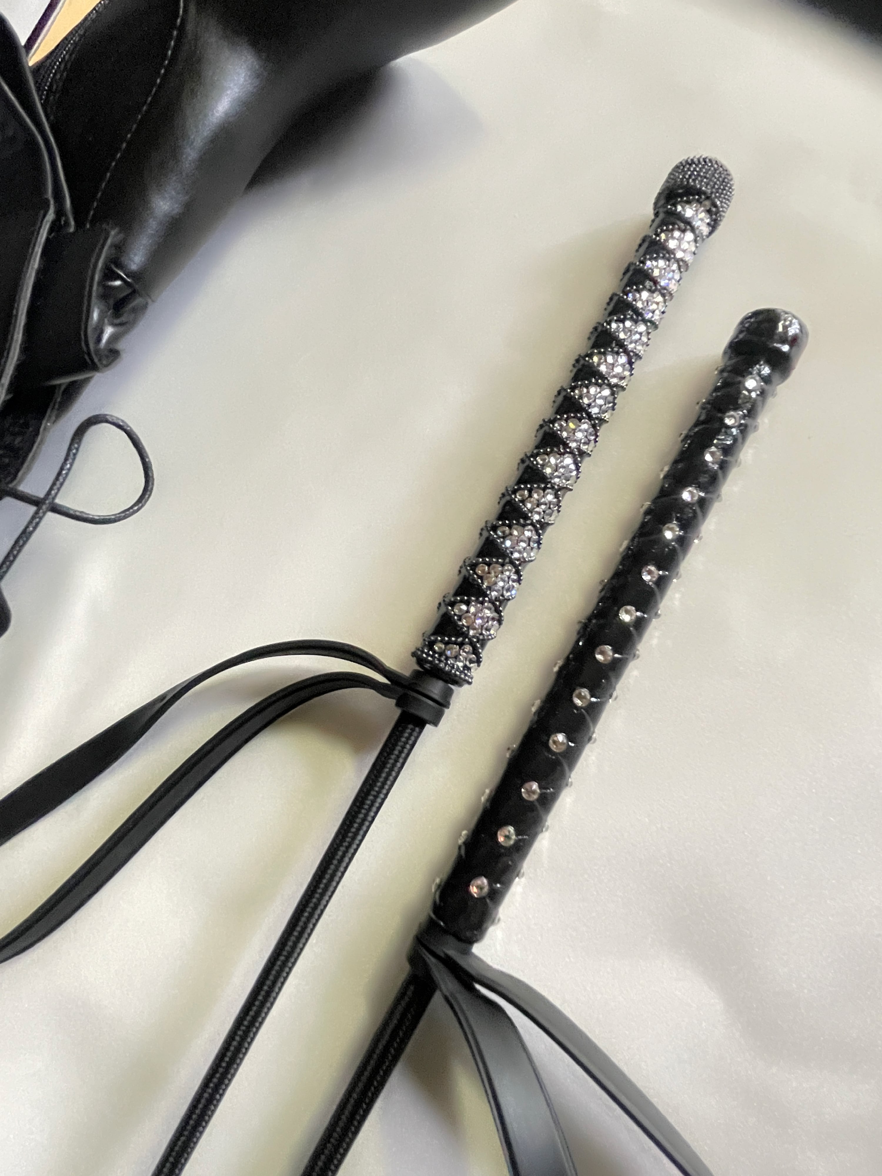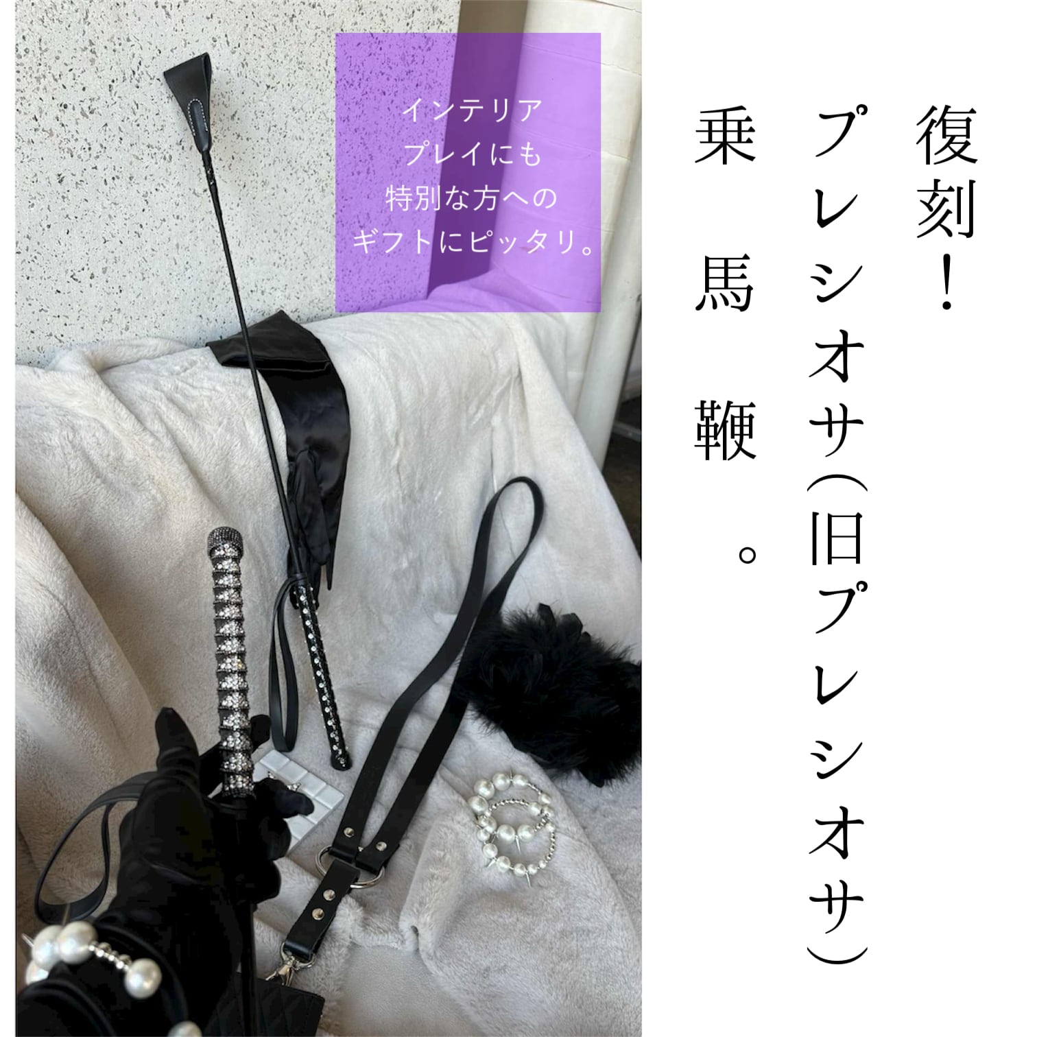 キラキラと輝く宝石のような美しさを持つ乗馬鞭です。プレシオサのクリスタルが贅沢にあしらわれ、FETISH で魅力的なアイテムに