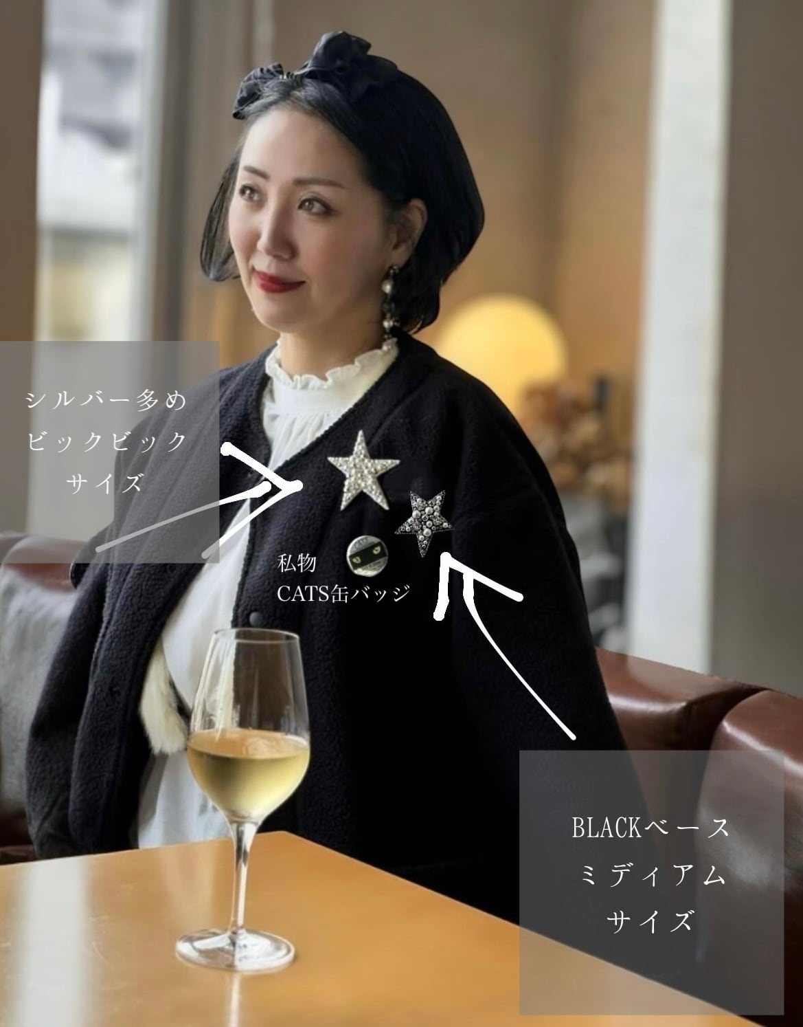 - ブローチはジャケット、ドレス、帽子に。